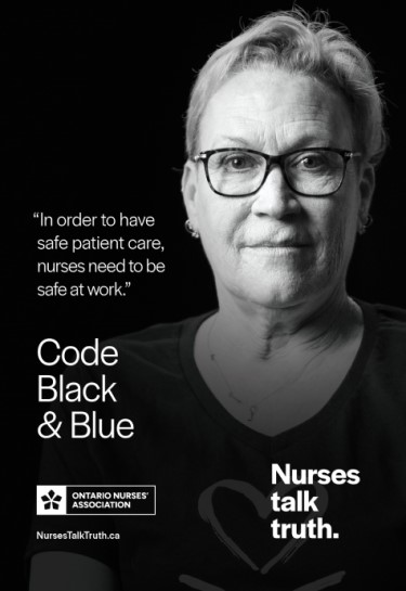 “With virtually every nurse and health-care professional experiencing workplace violence, we are using the phrase to reveal the reality of a bruised and battered workforce and call a code for urgent action as we do in our hospitals,” says provincial president Erin Ariss, who is also a registered nurse.